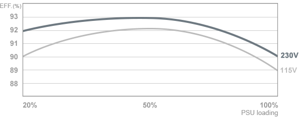 - Con certificación 80Plus Platinum para proporcionar un nivel de eficiencia de hasta el 92 % a 115 Vac.