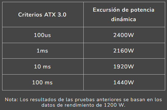 El Polar X2 pasa las cuatro estrictas pruebas de excursión de energía de la Guía PSU ATX 3.0, en las que el consumo de energía pico debe soportar hasta el 200 % de la potencia nominal durante 100 μs.