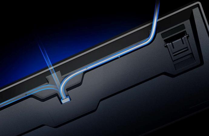 Mantén el cable bien colocado en los canales de la parte trasera del teclado Combat S para evitar interferencias con los movimientos de manos o ratones.