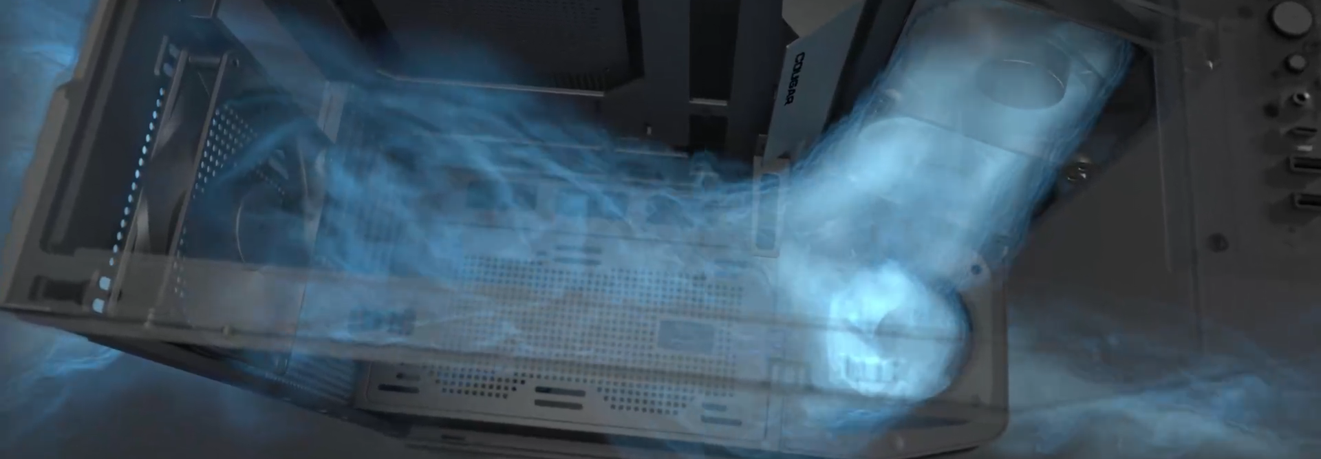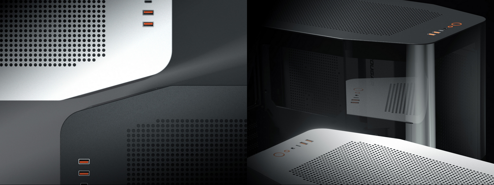 El diseño poliédrico del FV270 RGB, que combina forma y función, establece un nuevo estándar en dinámica de flujo de aire. La ubicación de los ventiladores de refrigeración en las caras en ángulo garantiza flujos de aire ininterrumpidos y concentrados, y el frente elevado brinda acceso a un eje adicional de ventilación, lo que permite la entrada de aire desde abajo.