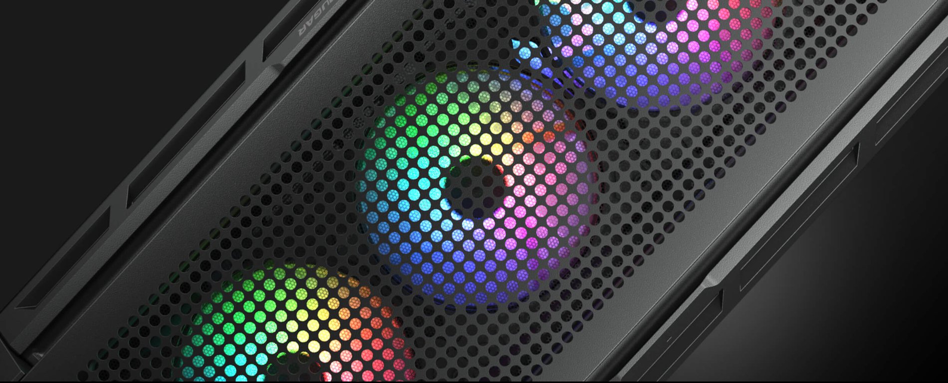 El espacio interior de la Airforce Pro RGB tiene capacidad para hasta 9 ventiladores, un radiador de refrigeración por agua de 360 mm y un cooler de CPU de 190 mm de altura. Este inmenso potencial de refrigeración evita el sobrecalentamiento de los principales componentes.