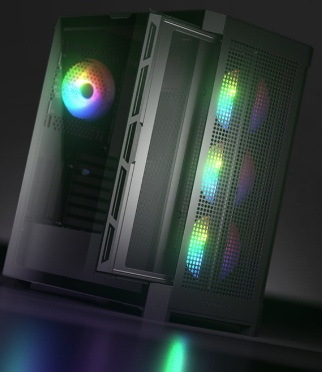 Airface Pro RGB es una combinación de diseño flexible, montaje sencillo y rendimiento de refrigeración superior. Con dos paneles frontales distintivos, uno para efectos de iluminación RGB asombrosos; y otro para un mayor flujo de aire y un rendimiento de refrigeración optimizado. Es la última creación de la serie Duoface, que proporciona una nueva mejora en cuanto a flexibilidad e ingenioso diseño de disposición abierta. Airface Pro RGB es un diseño de cuerpo ancho de 240 mm que ofrece abundante espacio para las nuevas tarjetas gráficas monstruosas y una impresionante capacidad de refrigeración para 9 ventiladores y un cooler de CPU de 190 mm.
