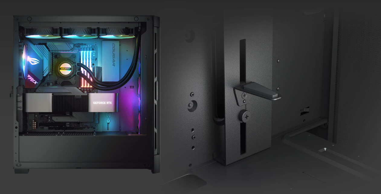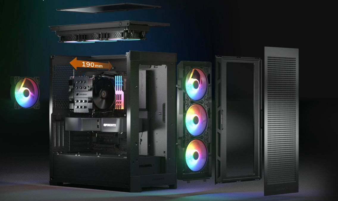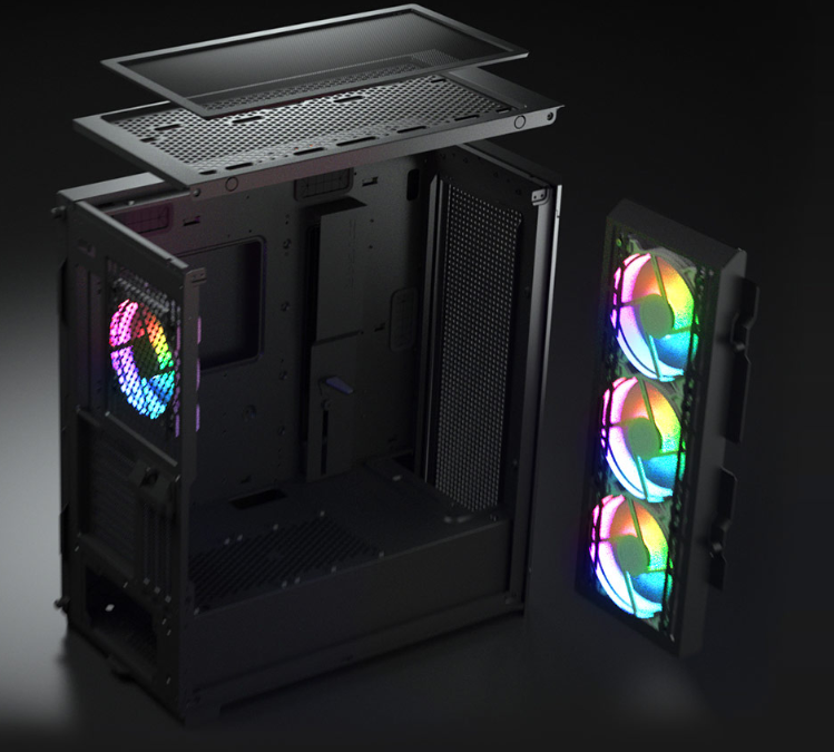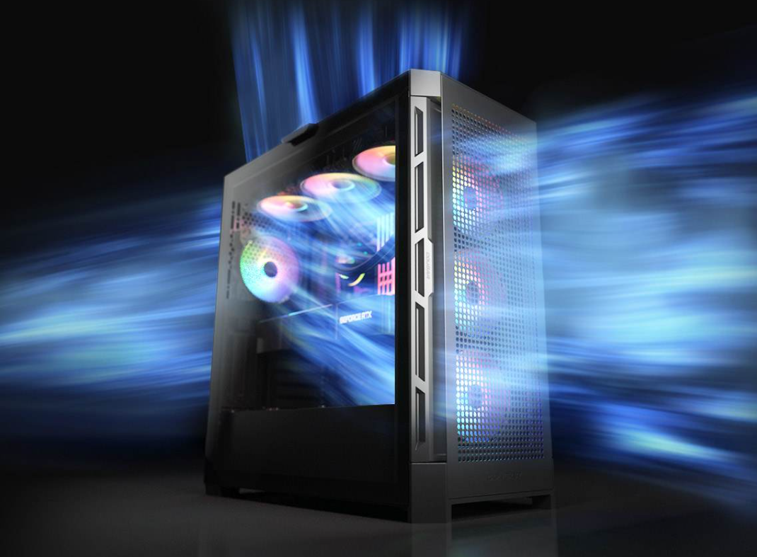 El panel de flujo de aire está forjado en metal de primera calidad y perforado con orificios de 5,0 mm de diámetro. Con un potencial de refrigeración superior para 9 ventiladores y un cooler de CPU de 190mm, proporciona una amplia entrada de aire fresco que le ofrece un rendimiento de refrigeración imbatible.