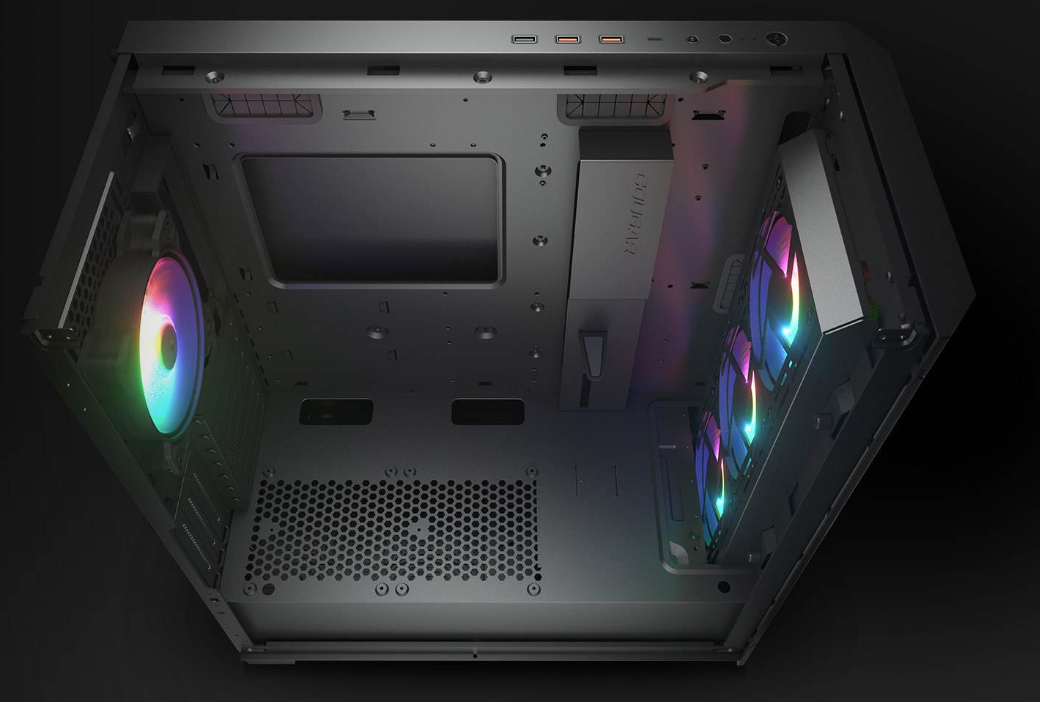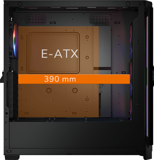 El diseño ancho de 240mm de Airface Pro RGB permite un espacio interior mucho más amplio con un mejor rendimiento de refrigeración y gestión de cables. Sin duda puede albergar una placa madre E-ATX, una tarjeta gráfica de 390 mm, dos discos duros de 3,5″ y dos unidades SSD de 2,5″, lo cual permite montar los sistemas más extremos.