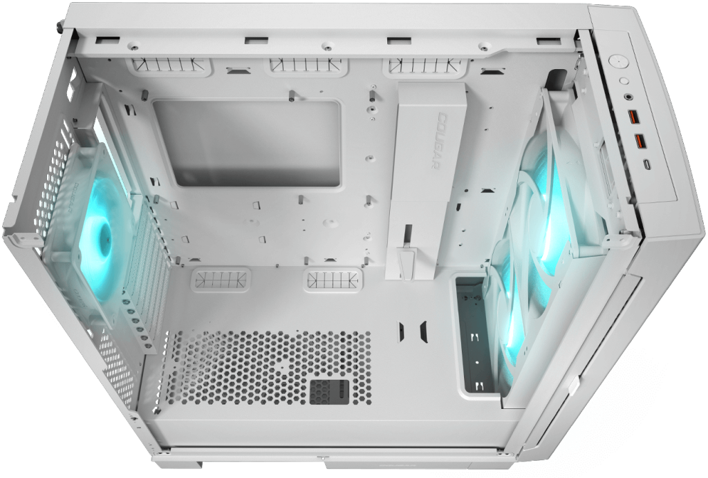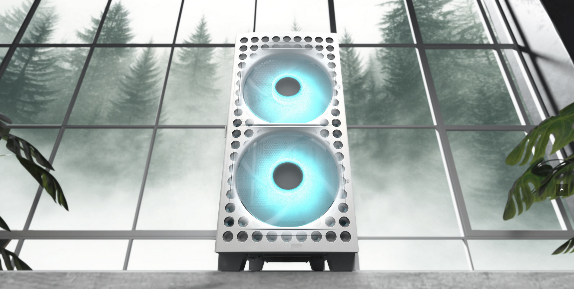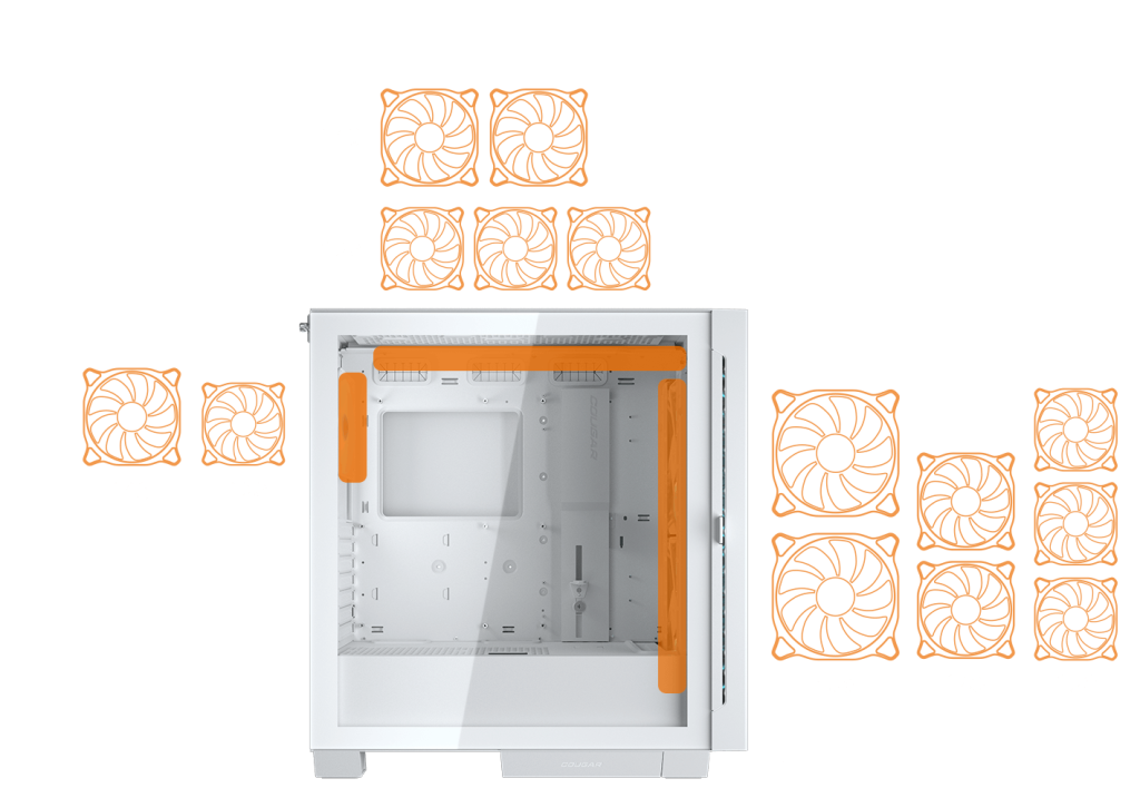 Dos potentes ventiladores de refrigeración frontal PWM de 180 mm mantienen tu sistema fresco bajo cargas pesadas.