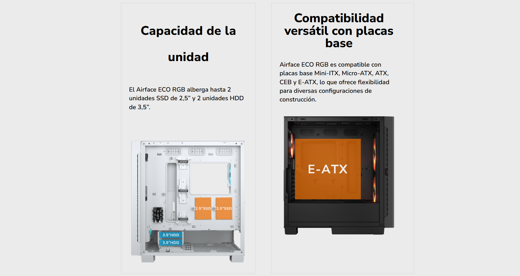 - Motherboard Mini-ITX, Micro-ATX, ATX, CEB y E-ATX