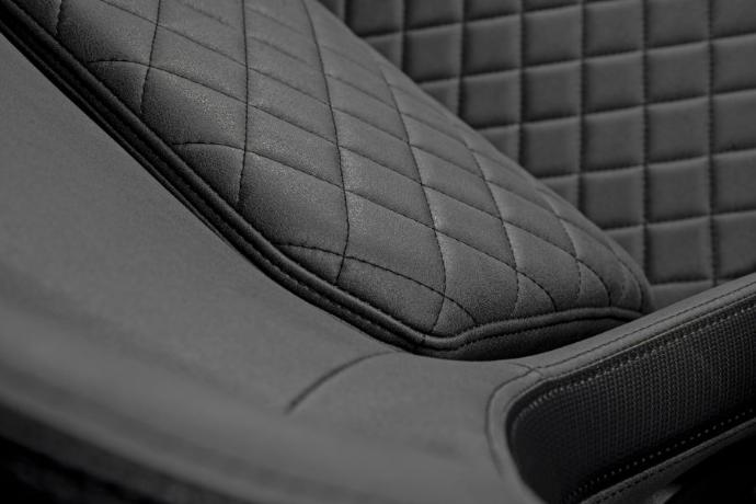 La Defensor S está tapizada en un material tipo cuero de alta calidad que ofrece un acabado suave al tacto, equilibrando durabilidad con una apariencia elegante. Este material avanzado es transpirable, resistente al desgaste y brinda una sensación natural y flexible al contacto.