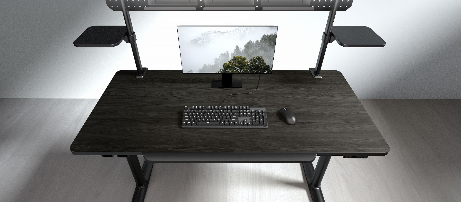 El panel de control está completamente ubicado debajo del escritorio, lo que garantiza que no sobresalga del borde y elimina el riesgo de contacto accidental. Ofrece un funcionamiento inteligente con dos ajustes de altura preestablecidos y una visualización de la altura en tiempo real.
