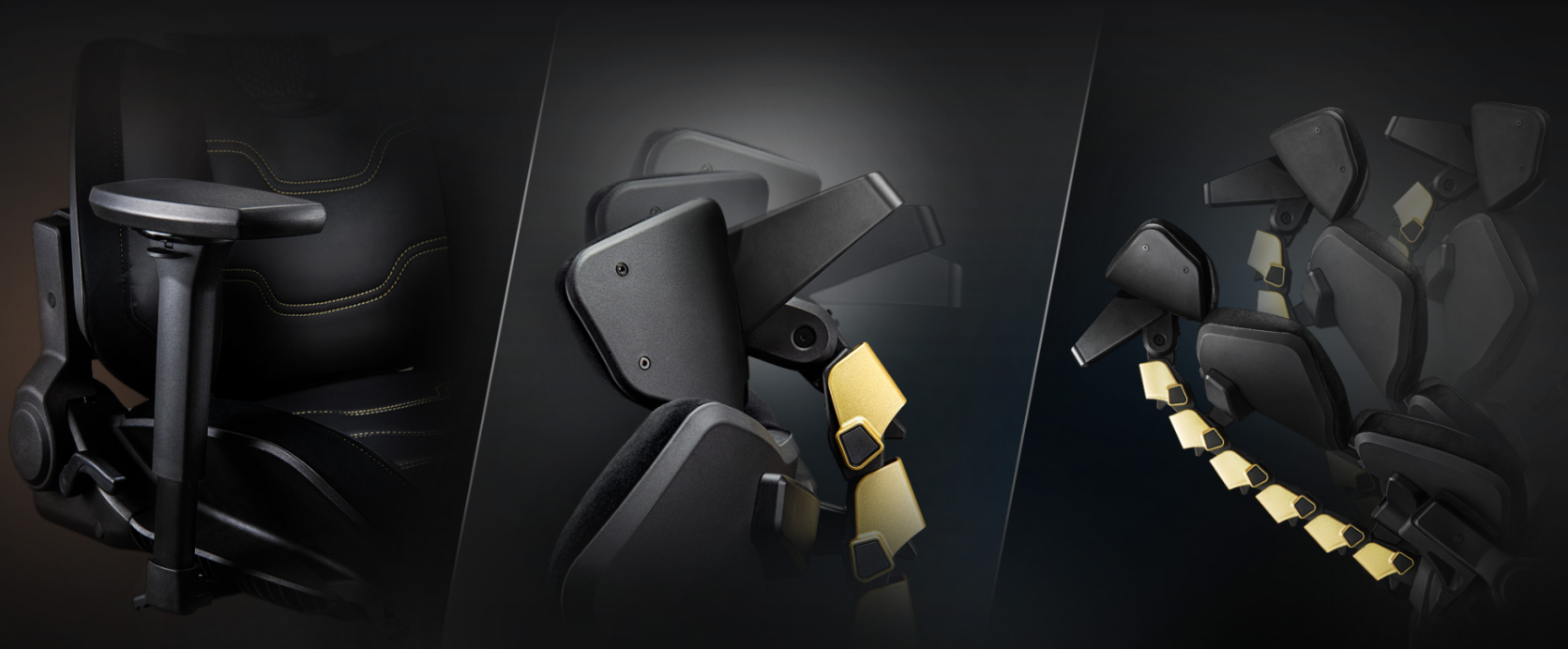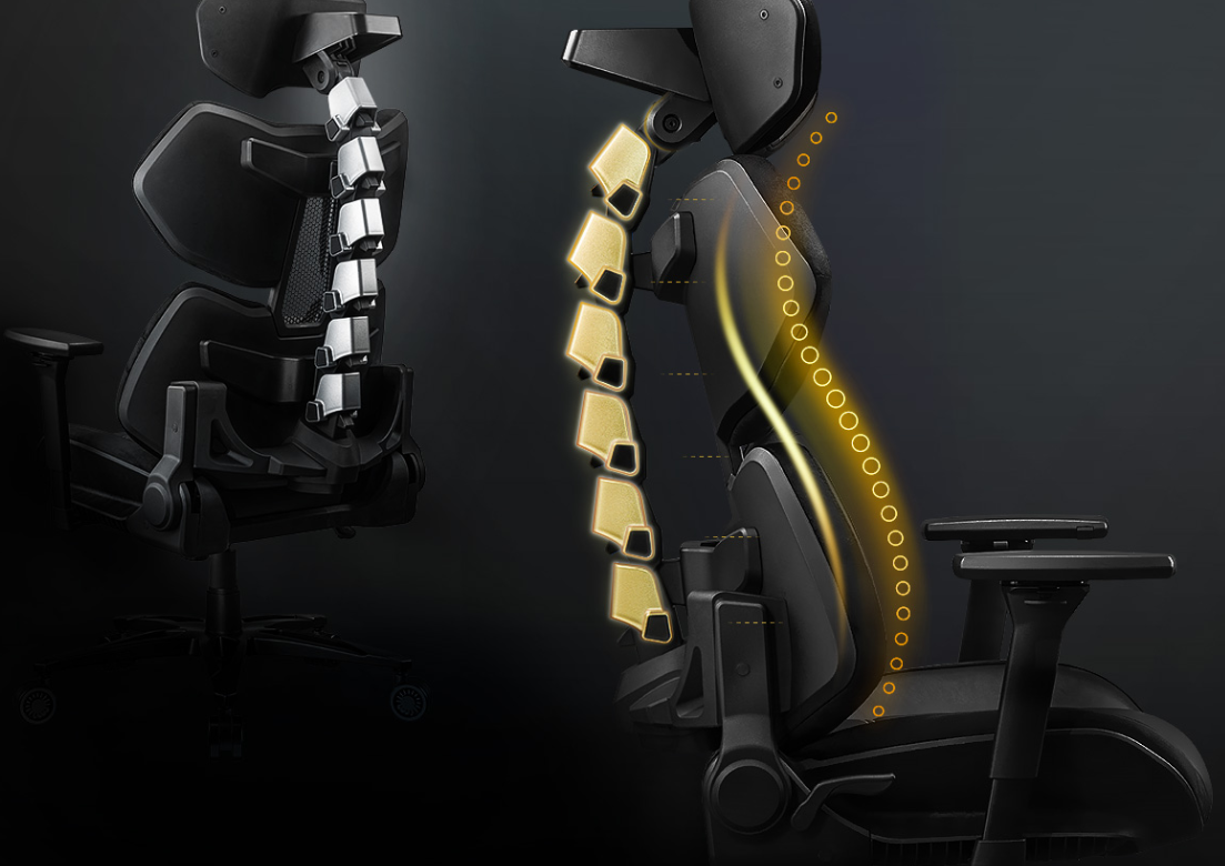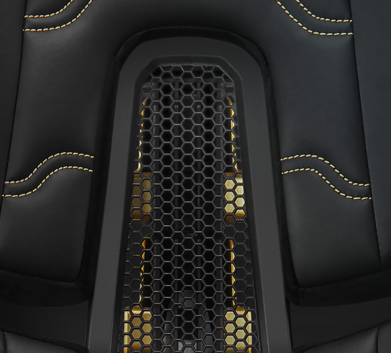 La estructura central del Terminator Elite imita la forma y la función de una segunda columna, dando forma al respaldo para alinearse con la curvatura natural de su espalda con nuevas opciones de acabado metálico dorado o plateado, más llamativas y exóticas.
