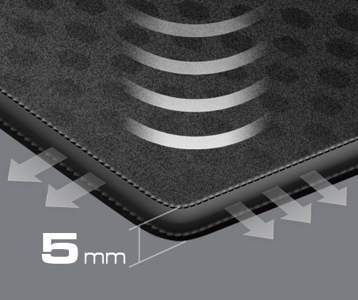 El grosor de 5 mm de COUGAR Arena proporciona el nivel adecuado de soporte y comodidad para largos períodos de juego. Lo suficientemente gruesa para proporcionar una superficie estable independientemente de lo que está detrás de ella, y lo suficientemente delgada para evitar dar la sensación de jugar en una plataforma.