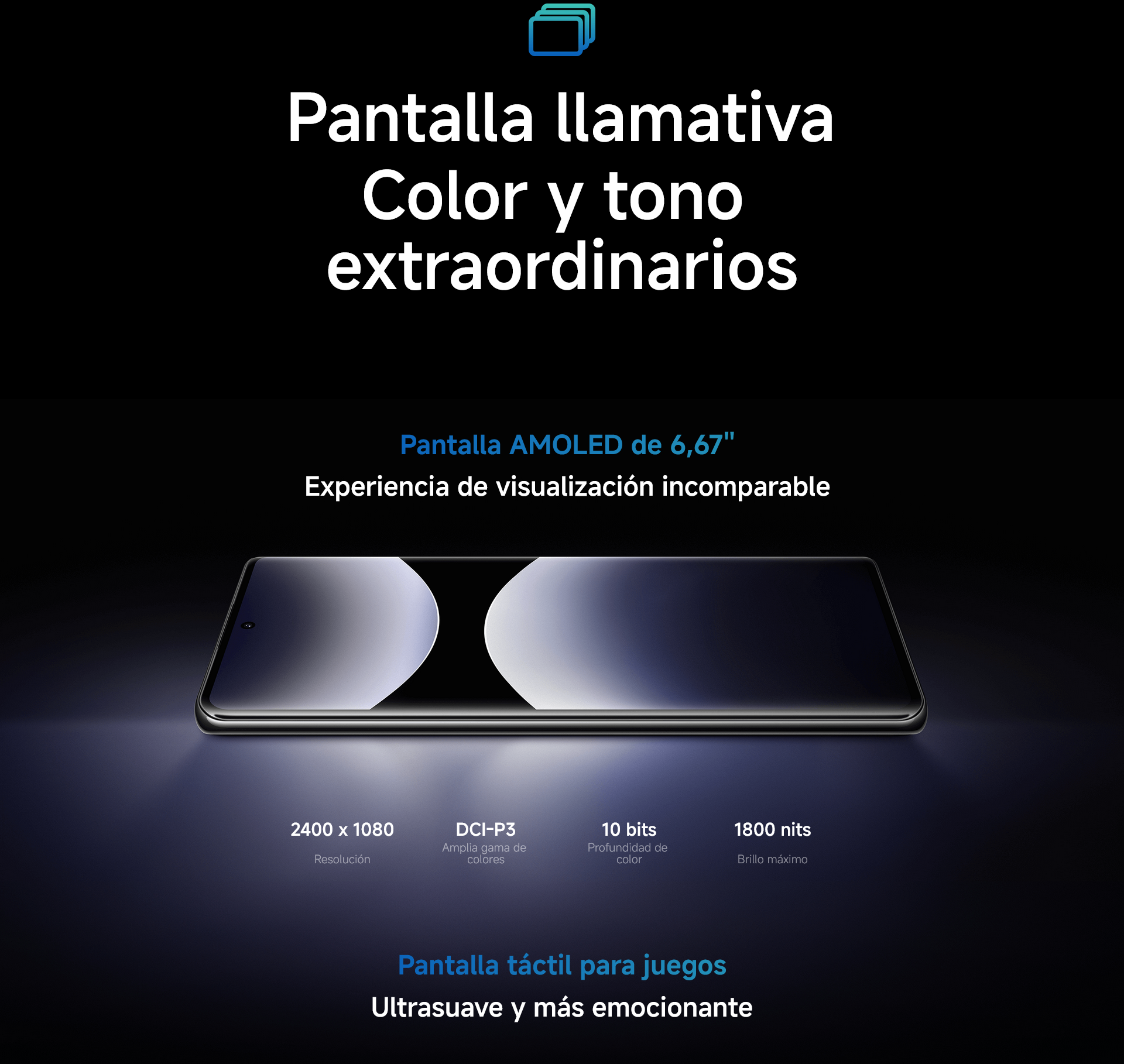 - Pantalla AMOLED 6.67" FHD+ (2400 x 1080) 1800 nits, 120 Hz