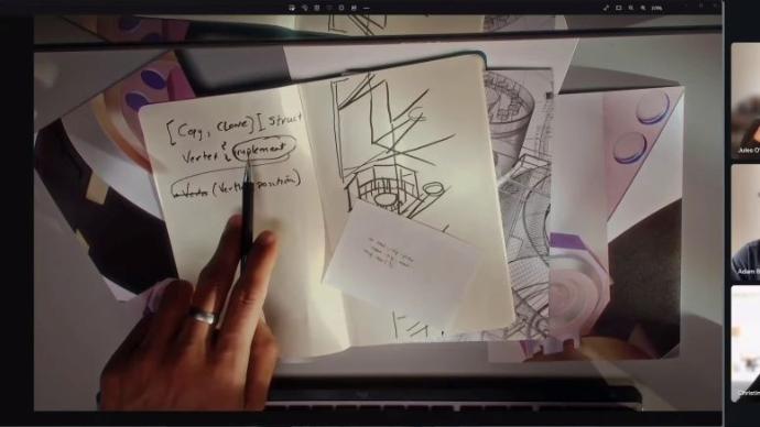 Incline hacia abajo la cámara web y comparta sus notas y bocetos en su escritorio con Show Mode, todo durante una llamada, para una mejor colaboración.