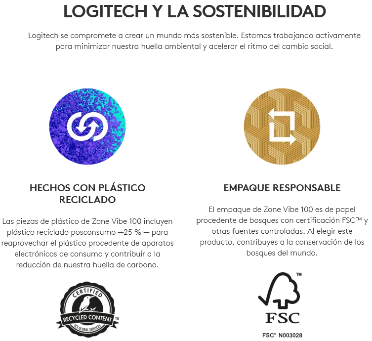 ¿Por qué conformarse con lo aburrido? Expresa tu sentido del estilo único con los auriculares inalámbricos Zone Vibe 100. Compatibles con las plataformas de reuniones por video comunes que usas todos los días. Audio excepcional para el tiempo de actividad y de inactividad. Fabricados con un 25% de plástico reciclado posconsumo para un futuro más sostenible.