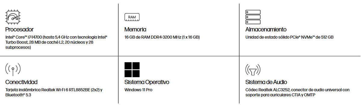 - Procesador Intel Core i7-14700@ 1.5 GHz - 5.40 GHz(Máx.)