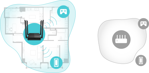 Los Routers WiFi 5 le permite conectar más dispositivos y transmitir simultáneamente con sus bandas duales de 2,4 GHz y 5 GHz. La banda de 2,4 GHz proporciona conexiones fiables para enviar correos electrónicos, navegar por Internet y otras tareas sencillas. La banda de 5 GHz ofrece mayor velocidad; ideal para aplicaciones de uso intensivo de medios, como transmisión de video y juegos en línea.
