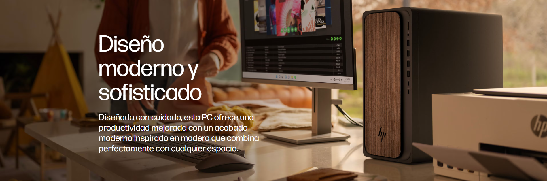 Computadora HP OmniDesk Intel Core Ultra 7 265 16GB RAM 1TB SSD Intel Graphics W11 Home Madera Oscura Teclado Inglés