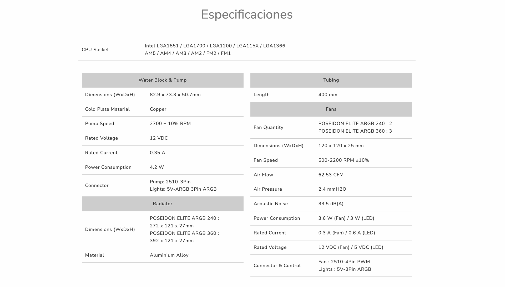 El cooler Poseidon Elite ARGB viene completo con todo el hardware de montaje necesario para las plataformas modernas, compatible con los últimos zócalos de CPU AMD e Intel. Instalación en sólo unos minutos.