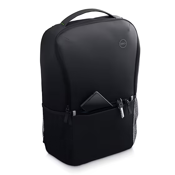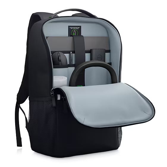 La mochila Dell EcoLoop Essential reduce nuestro impacto ambiental y protege su equipo tecnológico y sus elementos esenciales dondequiera que trabaje.