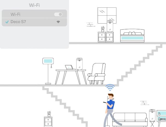 Deco S7 aumenta la cobertura Wi-Fi de toda la casa con un gran rendimiento. Las conexiones inalámbricas y los puertos Ethernet funcionan juntos para vincular las distintas unidades Deco proporcionando velocidades de red aún más rápidas y una cobertura más amplia y estable.