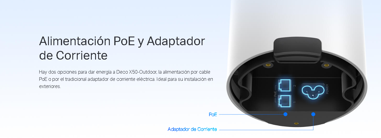 Deco X50-Outdoor está herméticamente cerrado para resistir en exteriores en condiciones de lluvia, polvo y temperaturas extremas. Así garantiza una señal Wi-Fi potente al aire libre. La alimentación por adaptador de corriente o cable PoE permite una fácil instalación.