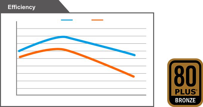 La certificación 80 Plus Bronze garantiza una eficiencia del 85% al 50% de carga. La mejor eficiencia energética conduce a menos desperdicio de energía, menos calor y menos ruido del ventilador.