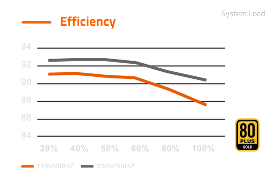 La certificación 80 Plus Gold garantiza ofrecer un 90% de eficiencia al 50% de carga.
