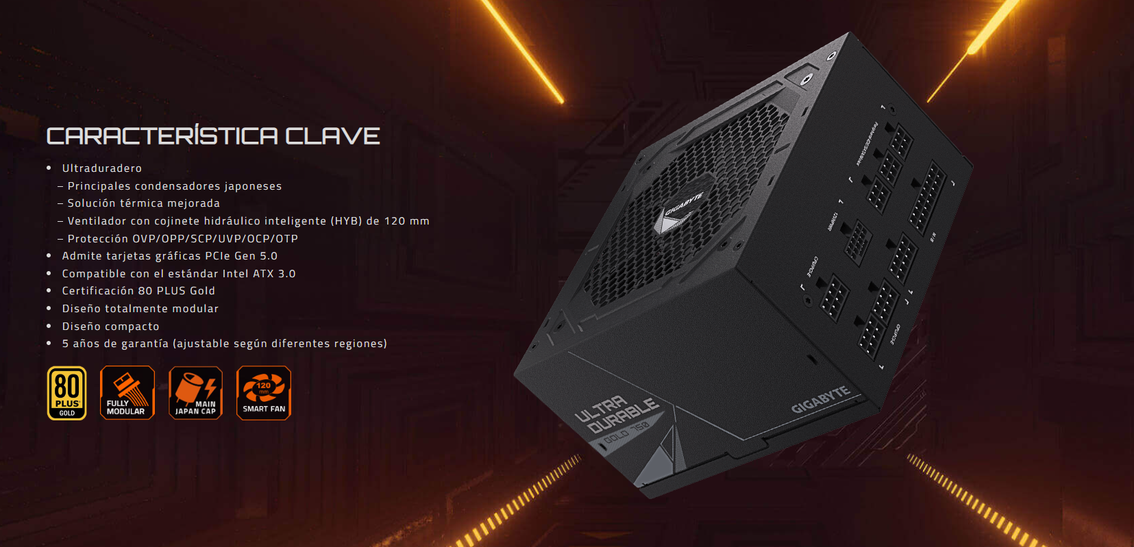 Fuente De Poder 750W Gigabyte UD750GM PG5 80 Plus Oro