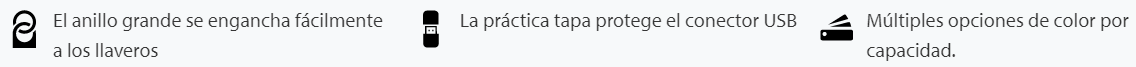 Rango de capacidades con anillo colorido que se adhiere fácilmente a los llaveros