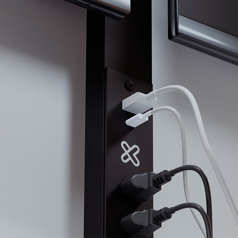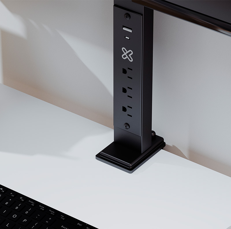 Soporte para dos monitores con regleta integrada y puertos USB