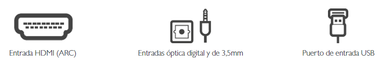Con puerto HDMI ARC y entradas de 3,5 mm y óptico digital, cuentas con muchas opciones para acceder a tu entretenimiento
