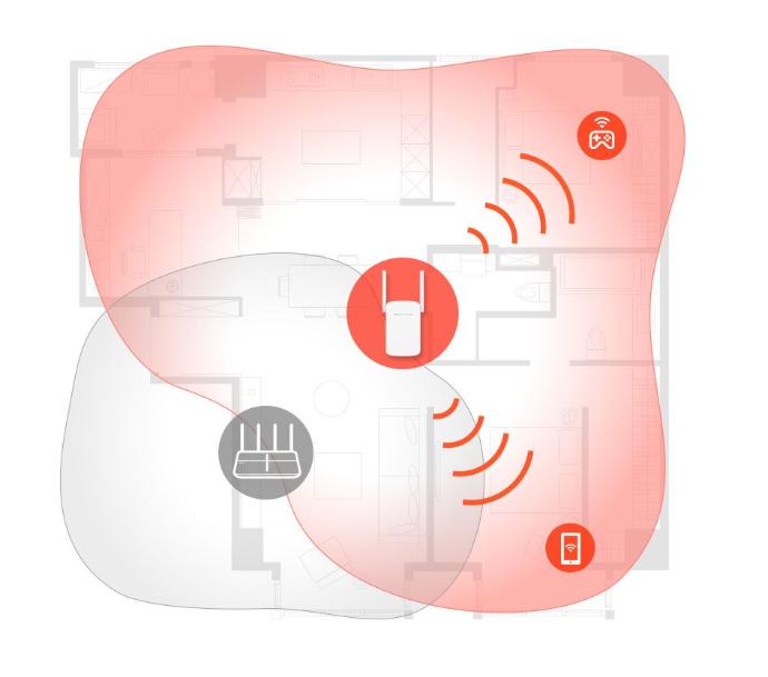 Pulsa el botón WPS en tu router y el botón WPS en tu extensor para ampliar la cobertura Wi-Fi en segundos.