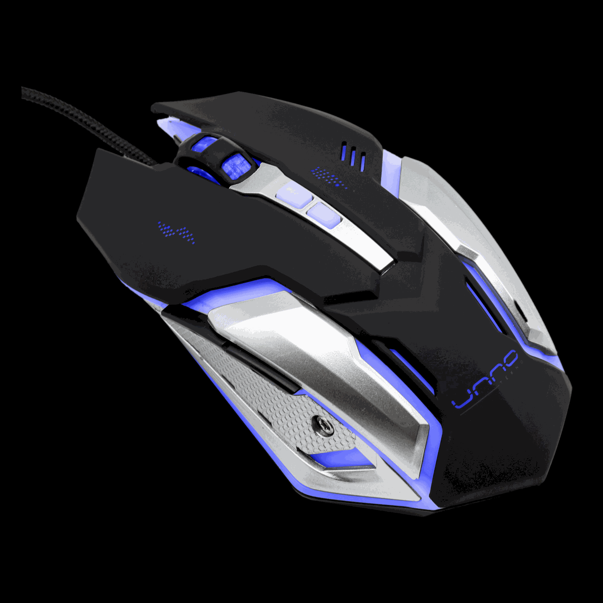 Mouse Gaming Alámbrico Unno Tekno Brave Óptico 2400DPI Negro-Gris