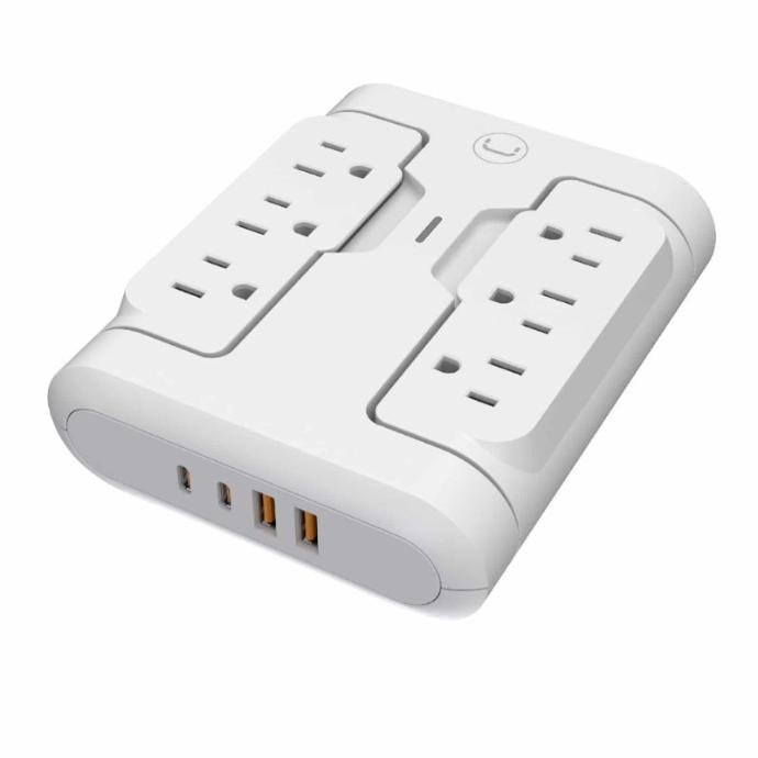 Regleta de pared con protector de sobretensión Unno Tekno PW5086WT PowerPod 6-en-1 giratorio blanco