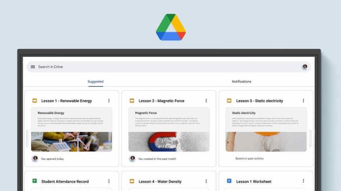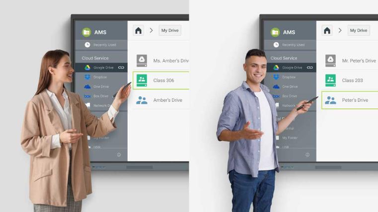 Abre rápidamente archivos de clase con cualquier aplicación de Google en una pantalla táctil grande.