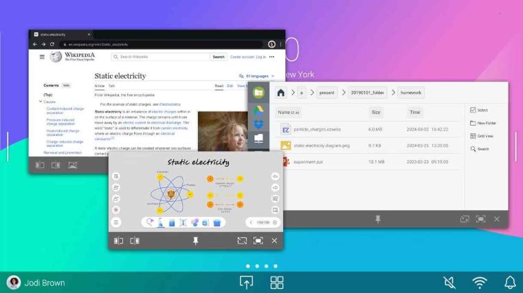 Mejora la eficiencia al enseñar con el modo de múltiples ventanas, que te permite usar la pizarra mientras trabajas con otras aplicaciones al mismo tiempo. *Disponible en el cuarto trimestre