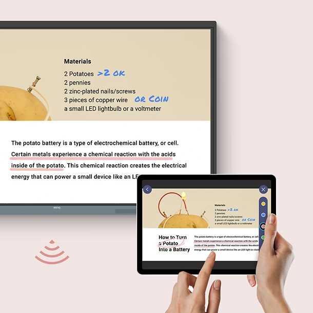 Extiende la pizarra para que otras personas puedan participar e interactuar con la pantalla, ya sea desde sus asientos o desde casa.