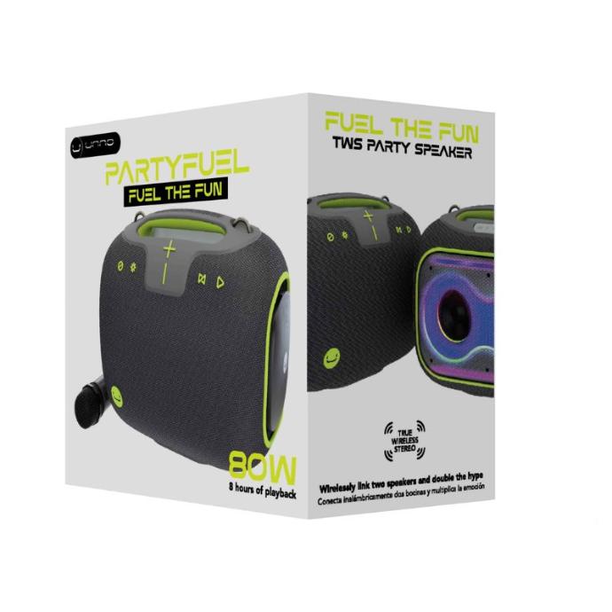 Bocina Bluetooth Unno Tekno SP9437GY PartyFuel TWS 80W IPX6 Gris