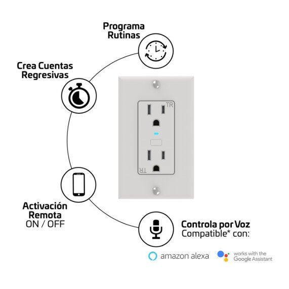 • Tomacorriente inteligente con activación remota por aplicación.