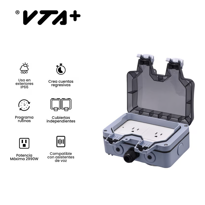 Tomacorriente Inteligente con Cubierta VTA+ 2 Tomas Smart Home Wi-Fi para Exteriores