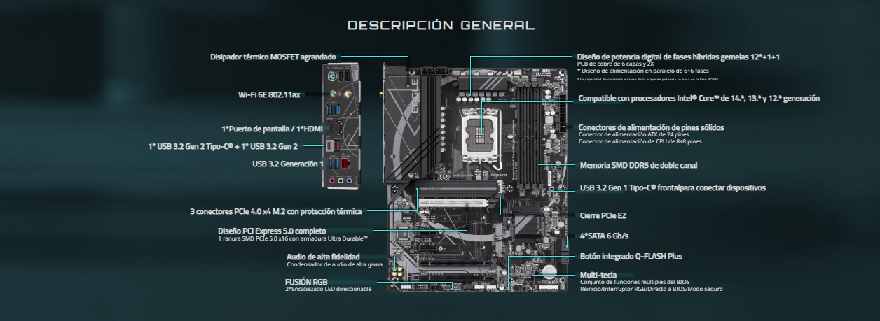 - Soporta 12th,13th y 14th Gen Procesadores Intel® Core™, Pentium® y Celeron®